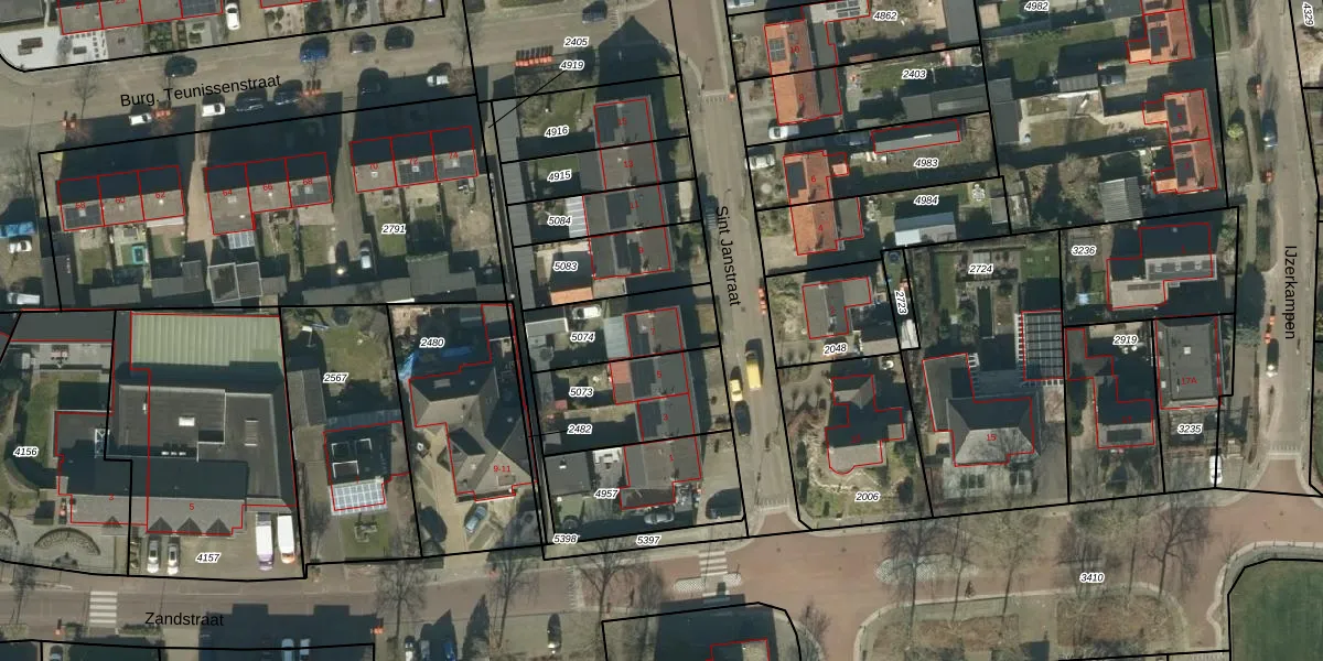 Gebruik de zoekbalk of klik op een perceel voor informatie over de adressen binnen dit perceel.