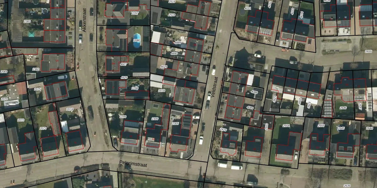 Gebruik de zoekbalk of klik op een perceel voor informatie over de adressen binnen dit perceel.