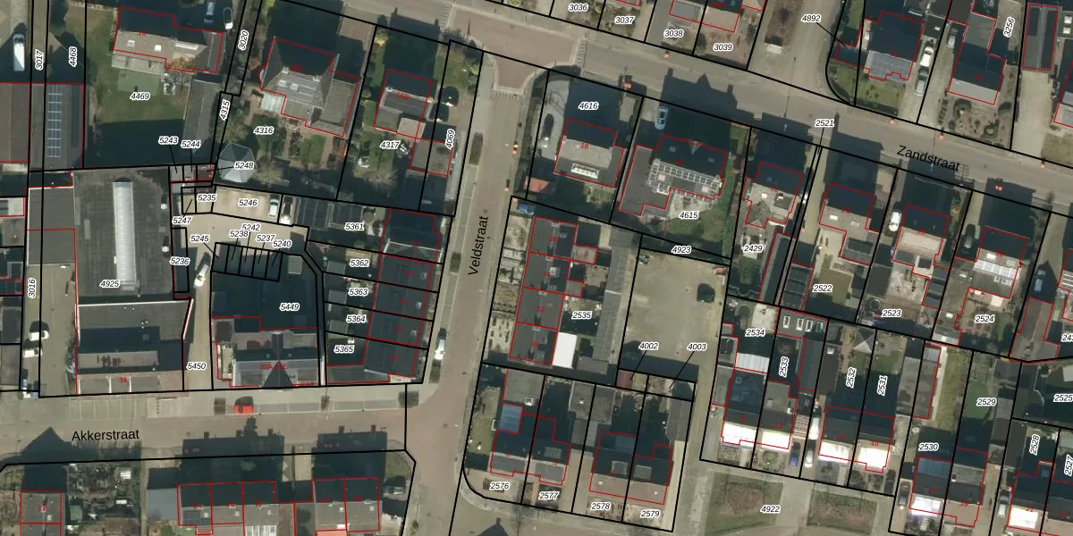 Veldstraat 34 is gelegen op kadastraal perceel NLD03B2535. Deze kadastrale aanduiding is uniek en wordt gebruikt door het Kadaster om eigendomsrechten en andere zakelijke rechten vast te leggen. Het perceel maakt onderdeel uit van de kadastrale gemeente Nuland.