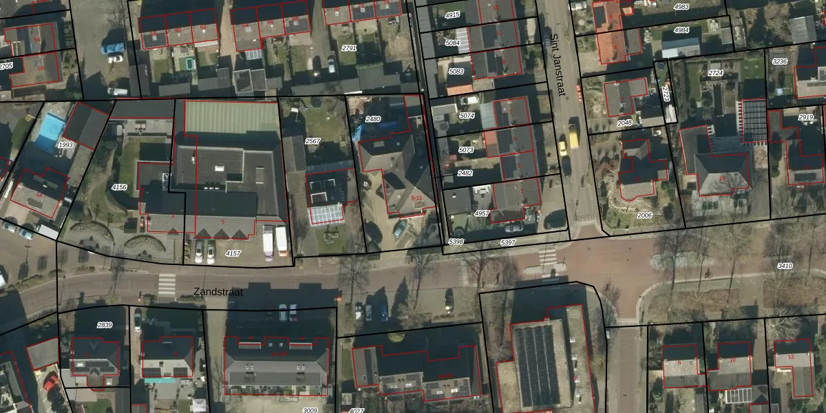 Het perceel waarop Zandstraat 9-A staat heeft een oppervlakte van 695 m². Dit is een groot perceel. De perceeloppervlakte wordt geregistreerd door het Kadaster. Gedetailleerde informatie over de maten van dit perceel kunt u vinden in het rapport Kadastrale kaart met maatvoering van Zandstraat 9-A.