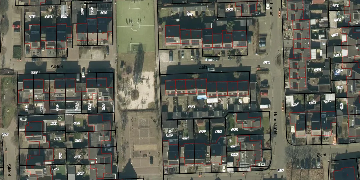 Het perceel waarop Zeis 13 staat heeft een oppervlakte van 1228 m². Dit is een zeer groot perceel. De perceeloppervlakte wordt geregistreerd door het Kadaster. Gedetailleerde informatie over de maten van dit perceel kunt u vinden in het rapport Kadastrale kaart met maatvoering van Zeis 13.