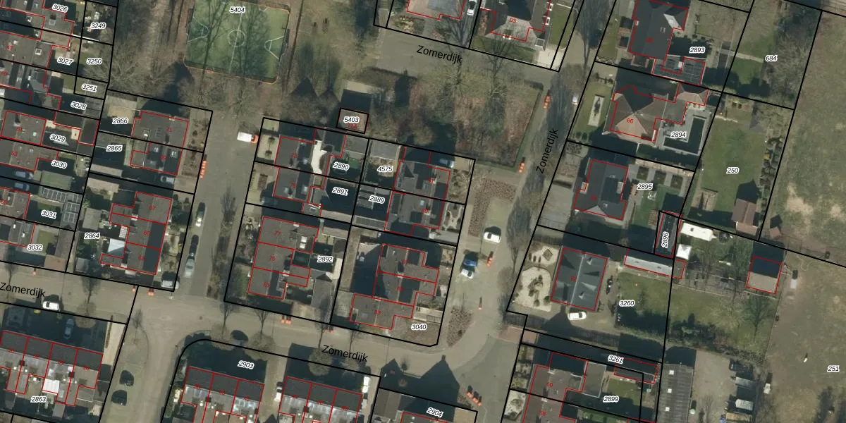 Het perceel waarop Zomerdijk 89 staat heeft een oppervlakte van 259 m². Dit is een middelgroot perceel. De perceeloppervlakte wordt geregistreerd door het Kadaster. Gedetailleerde informatie over de maten van dit perceel kunt u vinden in het rapport Kadastrale kaart met maatvoering van Zomerdijk 89.