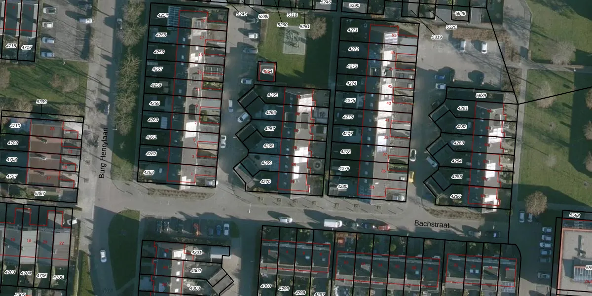 Bachstraat 25 is gelegen op kadastraal perceel NMD00B4268. Deze kadastrale aanduiding is uniek en wordt gebruikt door het Kadaster om eigendomsrechten en andere zakelijke rechten vast te leggen. Het perceel maakt onderdeel uit van de kadastrale gemeente Numansdorp.