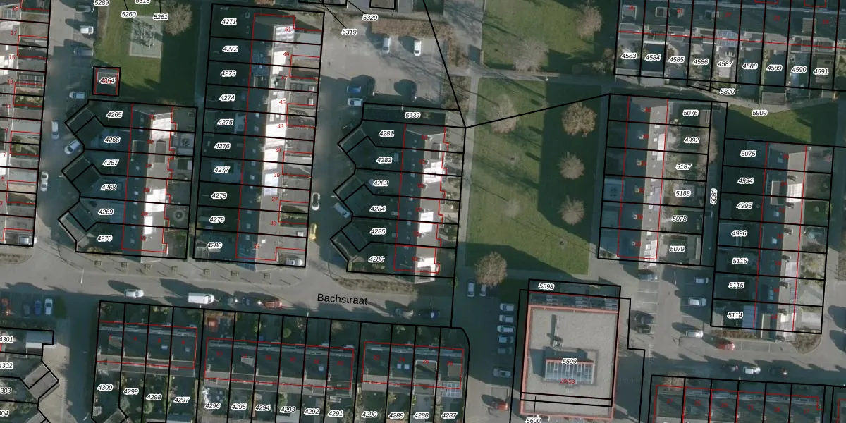 Het perceel waarop Bachstraat 57 staat heeft een oppervlakte van 155 m². Dit is een middelgroot perceel. De perceeloppervlakte wordt geregistreerd door het Kadaster. Gedetailleerde informatie over de maten van dit perceel kunt u vinden in het rapport Kadastrale kaart met maatvoering van Bachstraat 57.
