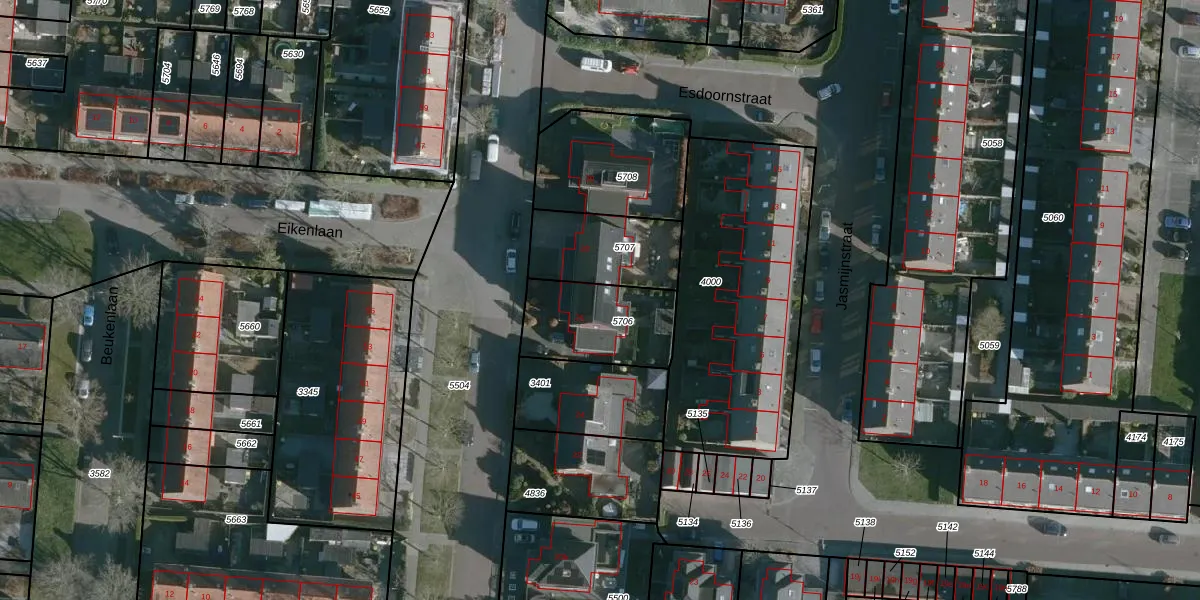 Gebruik de zoekbalk of klik op een perceel voor informatie over de adressen binnen dit perceel.