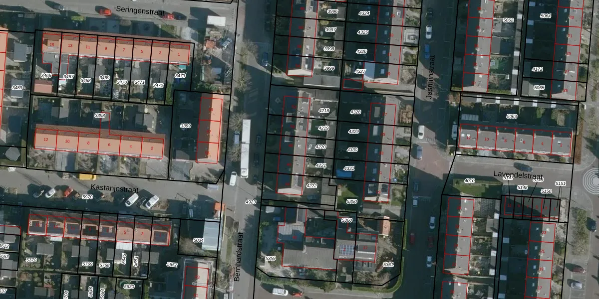 Bernhardstraat 48 is gelegen op kadastraal perceel NMD00B4220. Deze kadastrale aanduiding is uniek en wordt gebruikt door het Kadaster om eigendomsrechten en andere zakelijke rechten vast te leggen. Het perceel maakt onderdeel uit van de kadastrale gemeente Numansdorp.