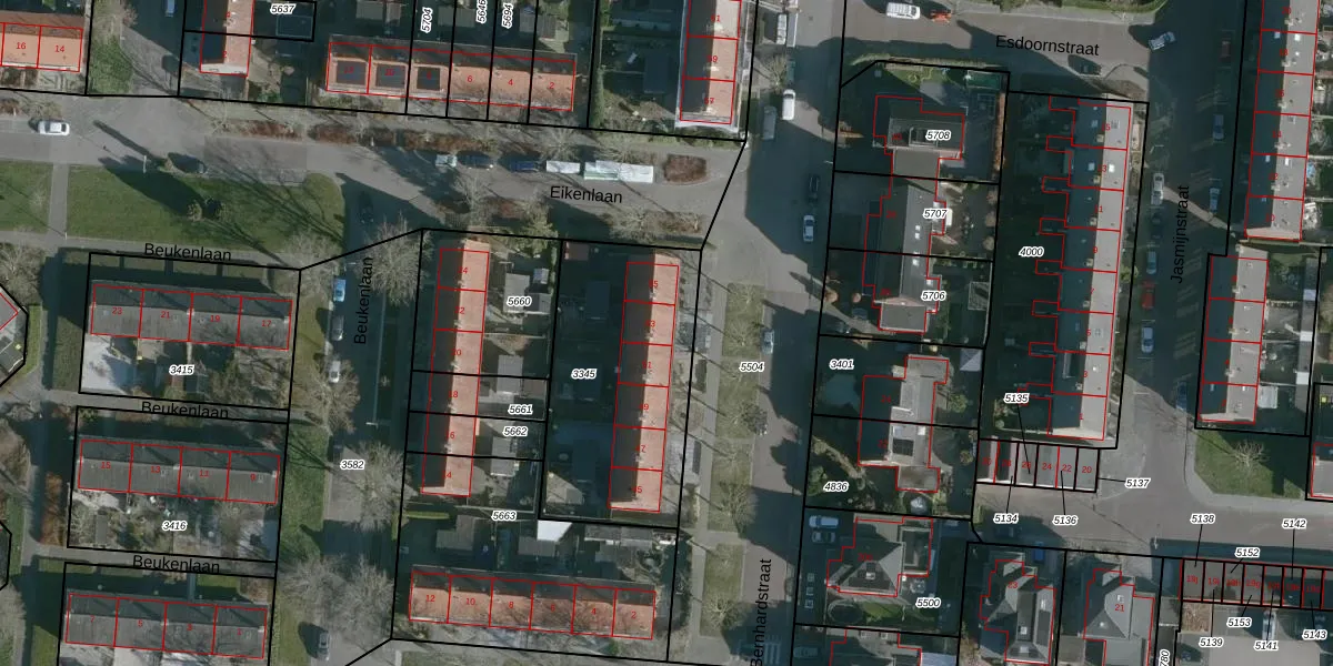 Het perceel waarop Bernhardstraat 53 staat heeft een oppervlakte van 872 m². Dit is een groot perceel. De perceeloppervlakte wordt geregistreerd door het Kadaster. Gedetailleerde informatie over de maten van dit perceel kunt u vinden in het rapport Kadastrale kaart met maatvoering van Bernhardstraat 53.