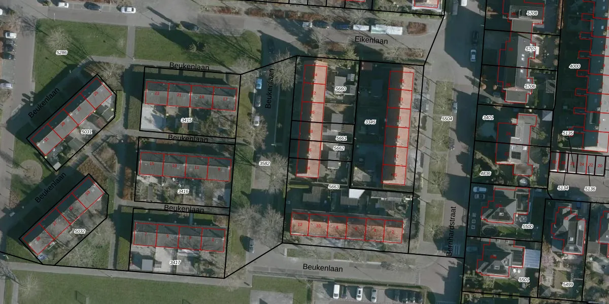 Beukenlaan 16 is gelegen op kadastraal perceel NMD00B5662. Deze kadastrale aanduiding is uniek en wordt gebruikt door het Kadaster om eigendomsrechten en andere zakelijke rechten vast te leggen. Het perceel maakt onderdeel uit van de kadastrale gemeente Numansdorp.