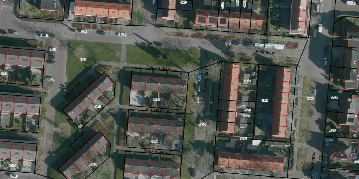 Het perceel waarop Beukenlaan 17 staat heeft een oppervlakte van 663 m². Dit is een groot perceel. De perceeloppervlakte wordt geregistreerd door het Kadaster. Gedetailleerde informatie over de maten van dit perceel kunt u vinden in het rapport Kadastrale kaart met maatvoering van Beukenlaan 17.