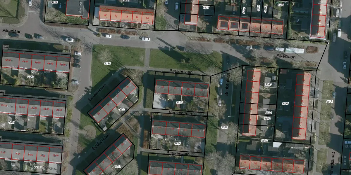 Het perceel waarop Beukenlaan 21 staat heeft een oppervlakte van 663 m². Dit is een groot perceel. De perceeloppervlakte wordt geregistreerd door het Kadaster. Gedetailleerde informatie over de maten van dit perceel kunt u vinden in het rapport Kadastrale kaart met maatvoering van Beukenlaan 21.