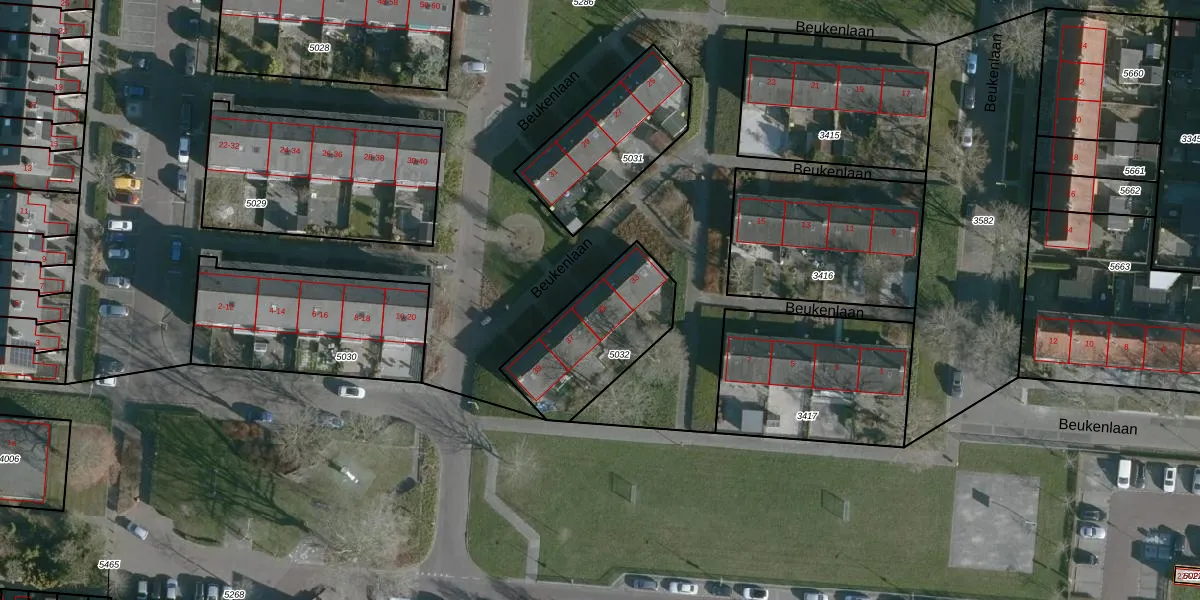 Beukenlaan 35 is gelegen op kadastraal perceel NMD00B5032. Deze kadastrale aanduiding is uniek en wordt gebruikt door het Kadaster om eigendomsrechten en andere zakelijke rechten vast te leggen. Het perceel maakt onderdeel uit van de kadastrale gemeente Numansdorp.