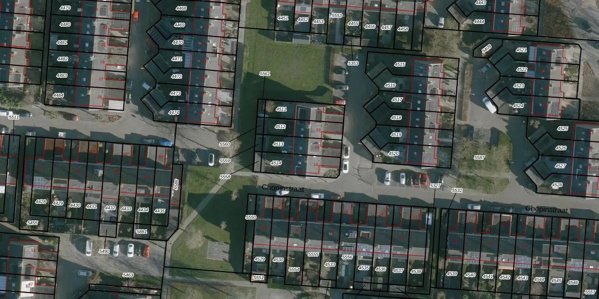 Het perceel waarop Chopinstraat 16 staat heeft een oppervlakte van 150 m². Dit is een middelgroot perceel. De perceeloppervlakte wordt geregistreerd door het Kadaster. Gedetailleerde informatie over de maten van dit perceel kunt u vinden in het rapport Kadastrale kaart met maatvoering van Chopinstraat 16.