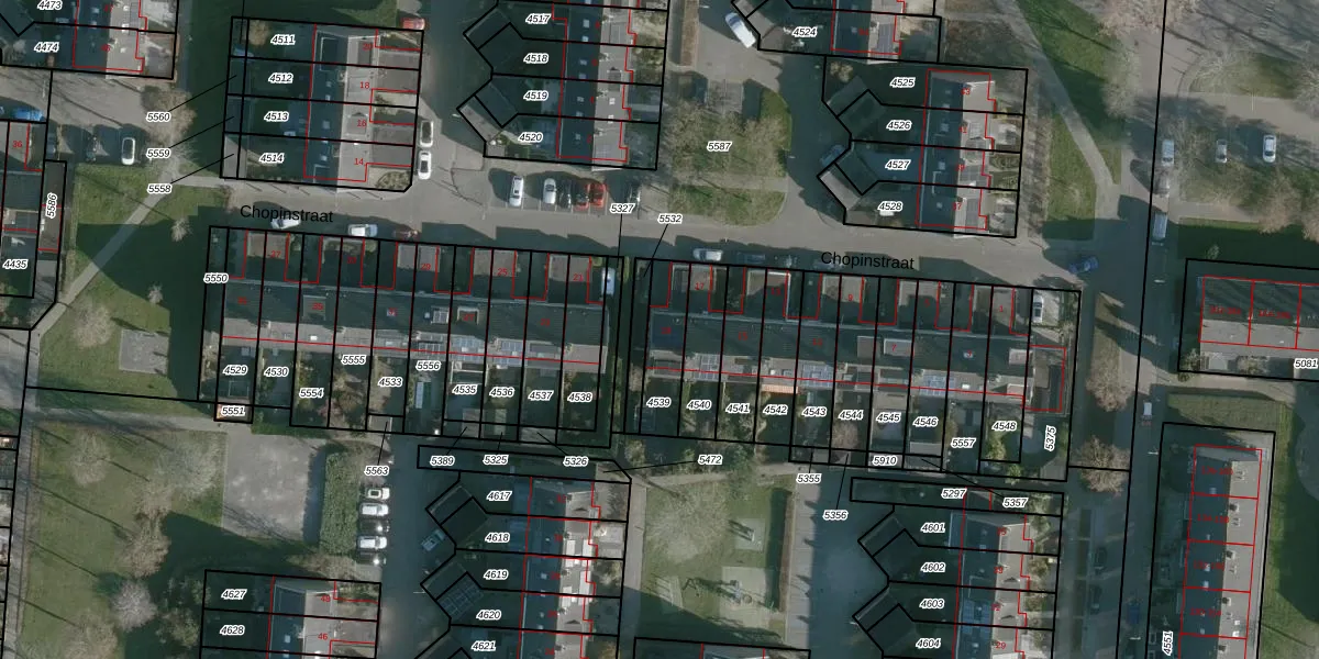 Het perceel waarop Chopinstraat 19 staat heeft een oppervlakte van 157 m². Dit is een middelgroot perceel. De perceeloppervlakte wordt geregistreerd door het Kadaster. Gedetailleerde informatie over de maten van dit perceel kunt u vinden in het rapport Kadastrale kaart met maatvoering van Chopinstraat 19.