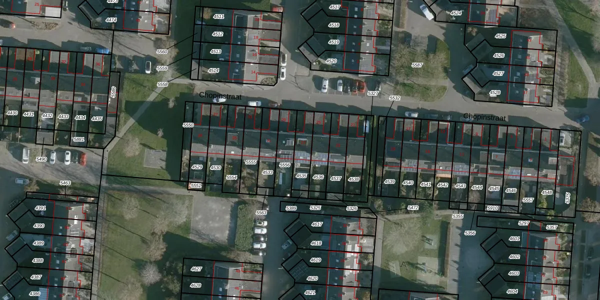 Het perceel waarop Chopinstraat 27 staat heeft een oppervlakte van 153 m². Dit is een middelgroot perceel. De perceeloppervlakte wordt geregistreerd door het Kadaster. Gedetailleerde informatie over de maten van dit perceel kunt u vinden in het rapport Kadastrale kaart met maatvoering van Chopinstraat 27.
