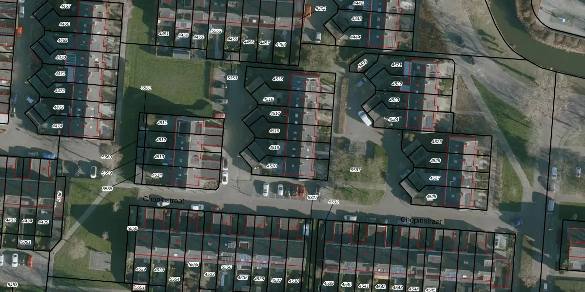 Chopinstraat 4 is gelegen op kadastraal perceel NMD00B4519. Deze kadastrale aanduiding is uniek en wordt gebruikt door het Kadaster om eigendomsrechten en andere zakelijke rechten vast te leggen. Het perceel maakt onderdeel uit van de kadastrale gemeente Numansdorp.
