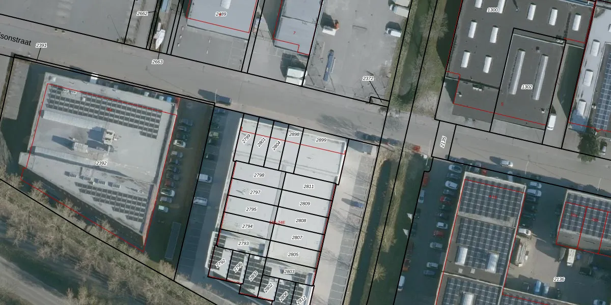 Het perceel waarop Edisonstraat 18-E staat heeft een oppervlakte van 233 m². Dit is een middelgroot perceel. De perceeloppervlakte wordt geregistreerd door het Kadaster. Gedetailleerde informatie over de maten van dit perceel kunt u vinden in het rapport Kadastrale kaart met maatvoering van Edisonstraat 18-E.