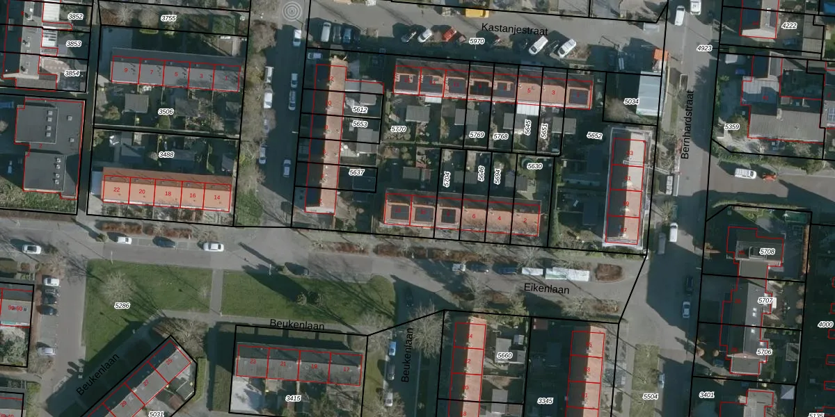 Eikenlaan 10 is gelegen op kadastraal perceel NMD00B5770. Deze kadastrale aanduiding is uniek en wordt gebruikt door het Kadaster om eigendomsrechten en andere zakelijke rechten vast te leggen. Het perceel maakt onderdeel uit van de kadastrale gemeente Numansdorp.