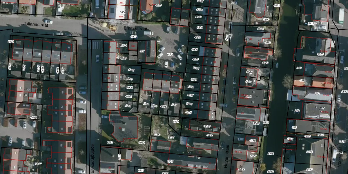Het perceel waarop Emmastraat 10 staat heeft een oppervlakte van 179 m². Dit is een middelgroot perceel. De perceeloppervlakte wordt geregistreerd door het Kadaster. Gedetailleerde informatie over de maten van dit perceel kunt u vinden in het rapport Kadastrale kaart met maatvoering van Emmastraat 10.