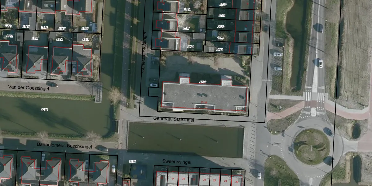 Het perceel waarop Generaal Stafsingel 39 staat heeft een oppervlakte van 1643 m². Dit is een zeer groot perceel. De perceeloppervlakte wordt geregistreerd door het Kadaster. Gedetailleerde informatie over de maten van dit perceel kunt u vinden in het rapport Kadastrale kaart met maatvoering van Generaal Stafsingel 39.