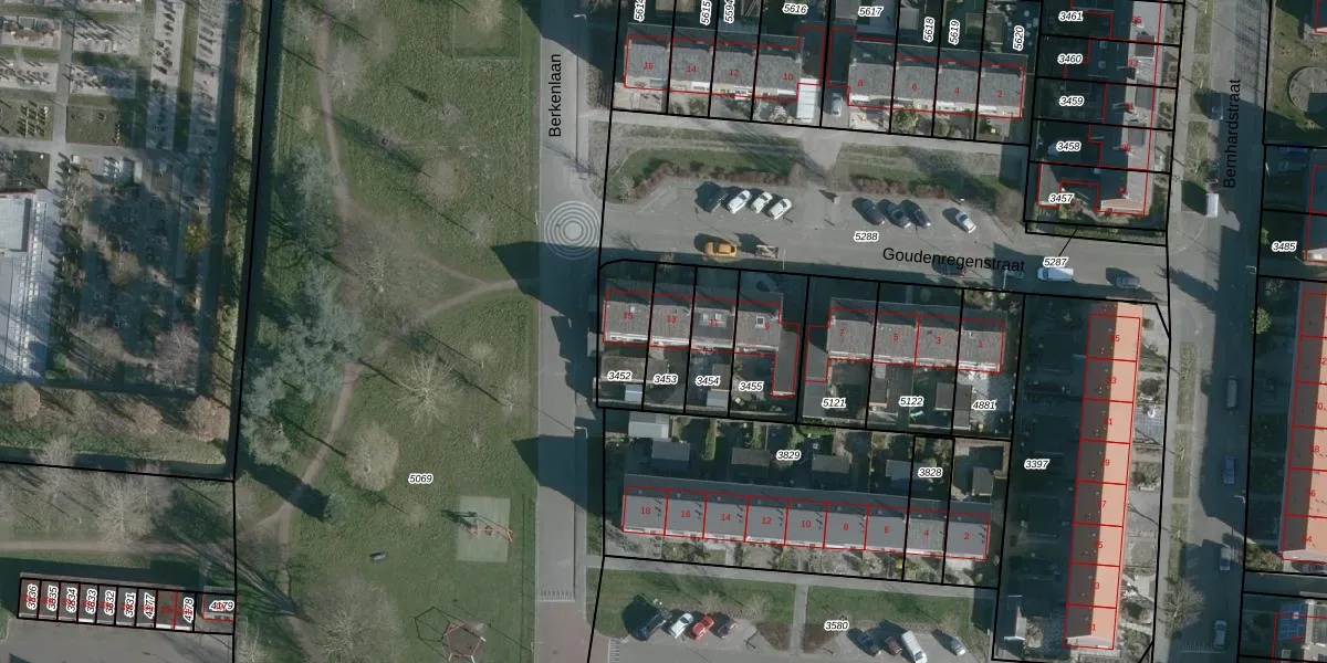 Gebruik de zoekbalk of klik op een perceel voor informatie over de adressen binnen dit perceel.