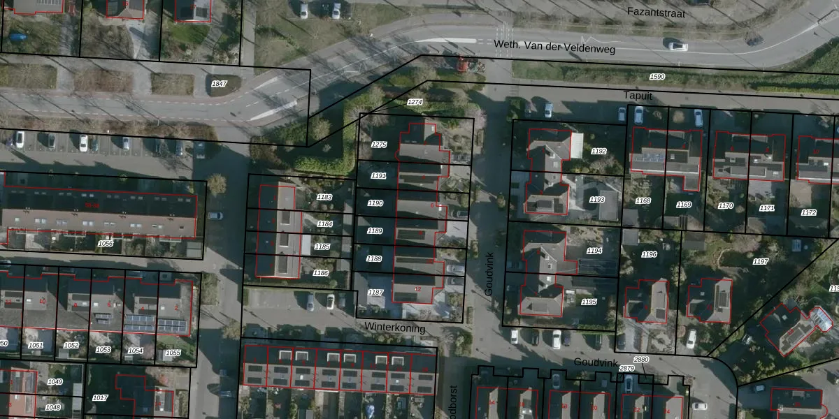 Gebruik de zoekbalk of klik op een perceel voor informatie over de adressen binnen dit perceel.