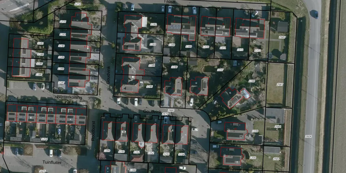 Gebruik de zoekbalk of klik op een perceel voor informatie over de adressen binnen dit perceel.