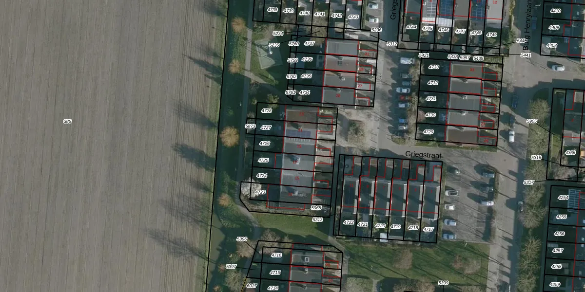 Griegstraat 19 is gelegen op kadastraal perceel NMD00B4726. Deze kadastrale aanduiding is uniek en wordt gebruikt door het Kadaster om eigendomsrechten en andere zakelijke rechten vast te leggen. Het perceel maakt onderdeel uit van de kadastrale gemeente Numansdorp.