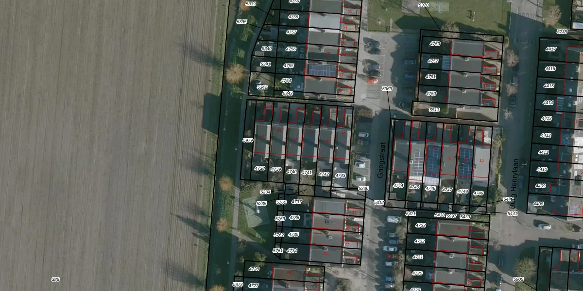 Griegstraat 39 is gelegen op kadastraal perceel NMD00B4740. Deze kadastrale aanduiding is uniek en wordt gebruikt door het Kadaster om eigendomsrechten en andere zakelijke rechten vast te leggen. Het perceel maakt onderdeel uit van de kadastrale gemeente Numansdorp.