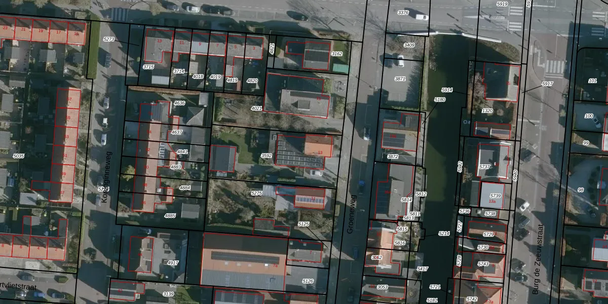 Het perceel waarop Groeneweg 13 staat heeft een oppervlakte van 755 m². Dit is een groot perceel. De perceeloppervlakte wordt geregistreerd door het Kadaster. Gedetailleerde informatie over de maten van dit perceel kunt u vinden in het rapport Kadastrale kaart met maatvoering van Groeneweg 13.
