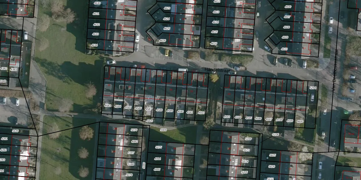 Händelstraat 21 is gelegen op kadastraal perceel NMD00B4590. Deze kadastrale aanduiding is uniek en wordt gebruikt door het Kadaster om eigendomsrechten en andere zakelijke rechten vast te leggen. Het perceel maakt onderdeel uit van de kadastrale gemeente Numansdorp.