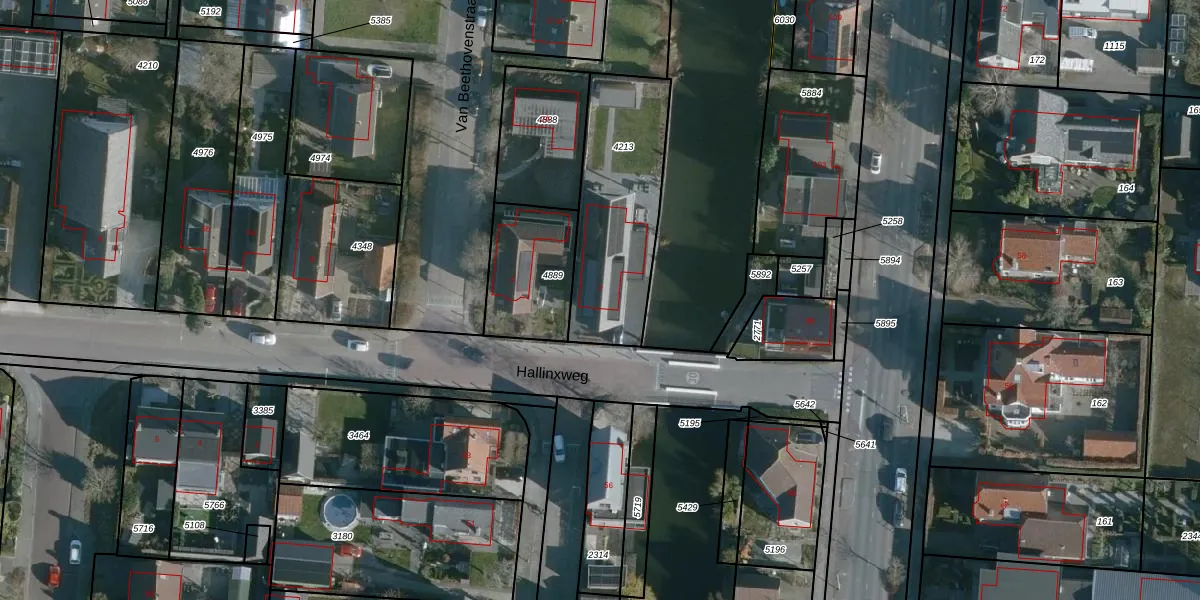 Gebruik de zoekbalk of klik op een perceel voor informatie over de adressen binnen dit perceel.