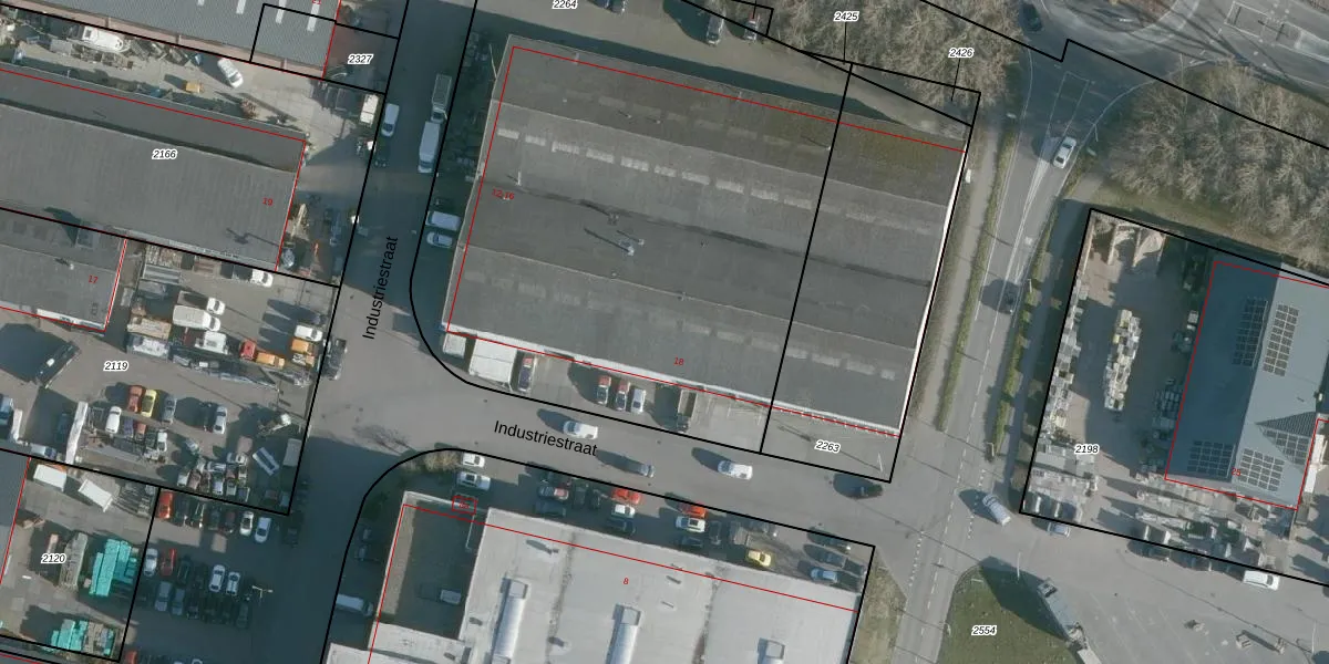 Het perceel waarop Industriestraat 12-a staat heeft een oppervlakte van 3600 m². Dit is een zeer groot perceel. De perceeloppervlakte wordt geregistreerd door het Kadaster. Gedetailleerde informatie over de maten van dit perceel kunt u vinden in het rapport Kadastrale kaart met maatvoering van Industriestraat 12-a.