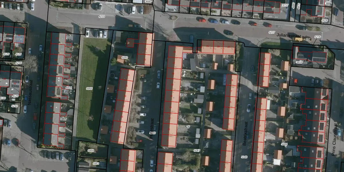 Het perceel waarop Irenestraat 18 staat heeft een oppervlakte van 4948 m². Dit is een zeer groot perceel. De perceeloppervlakte wordt geregistreerd door het Kadaster. Gedetailleerde informatie over de maten van dit perceel kunt u vinden in het rapport Kadastrale kaart met maatvoering van Irenestraat 18.
