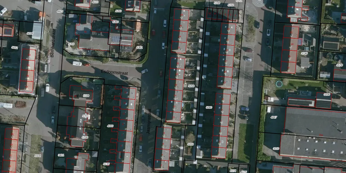 Jasmijnstraat 16 is gelegen op kadastraal perceel NMD00B5058. Deze kadastrale aanduiding is uniek en wordt gebruikt door het Kadaster om eigendomsrechten en andere zakelijke rechten vast te leggen. Het perceel maakt onderdeel uit van de kadastrale gemeente Numansdorp.