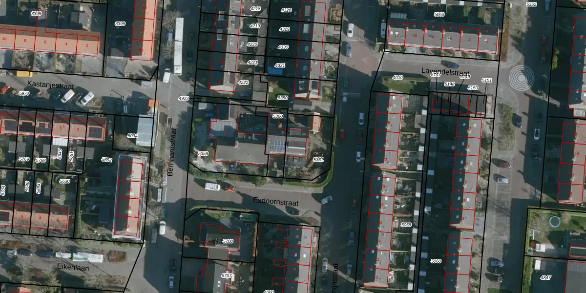 Gebruik de zoekbalk of klik op een perceel voor informatie over de adressen binnen dit perceel.