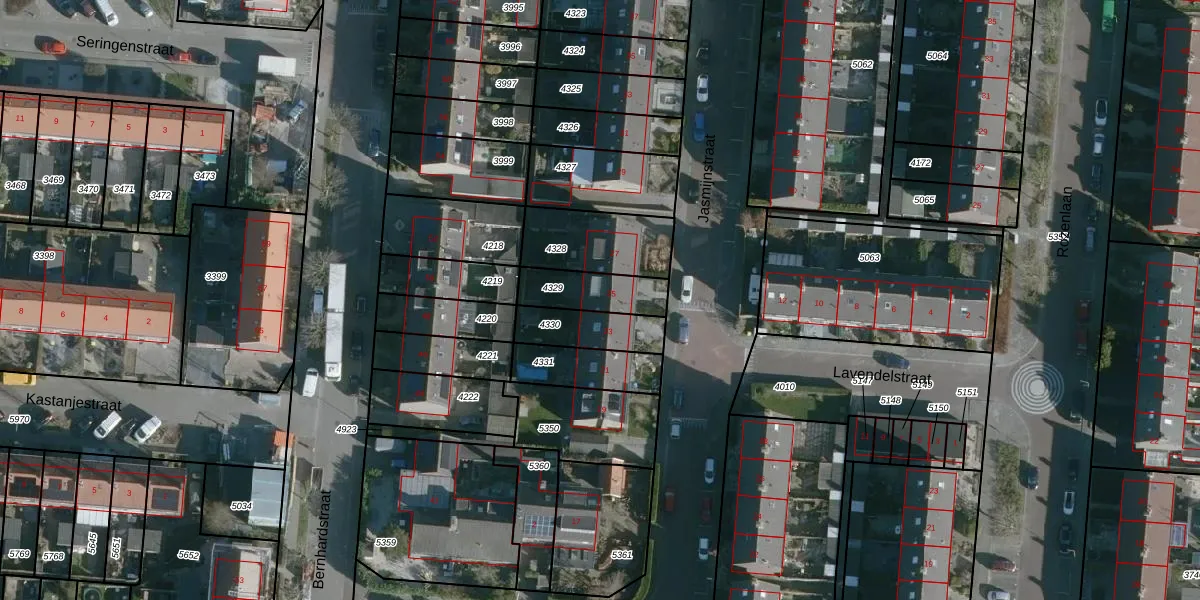 Het perceel waarop Jasmijnstraat 25 staat heeft een oppervlakte van 161 m². Dit is een middelgroot perceel. De perceeloppervlakte wordt geregistreerd door het Kadaster. Gedetailleerde informatie over de maten van dit perceel kunt u vinden in het rapport Kadastrale kaart met maatvoering van Jasmijnstraat 25.