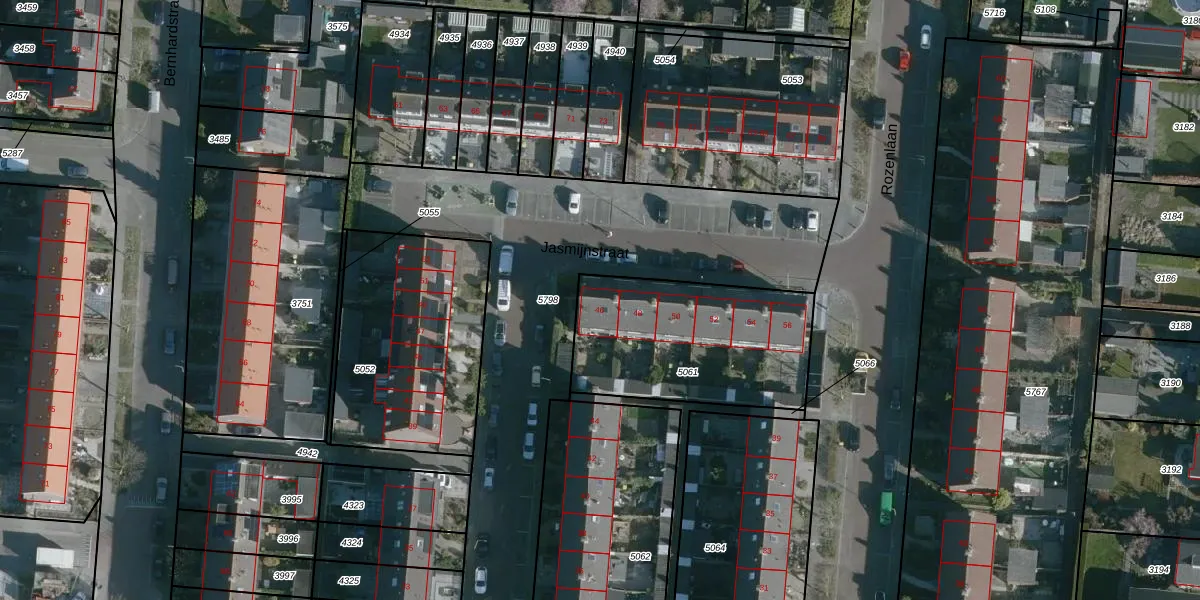 Jasmijnstraat 46 is gelegen op kadastraal perceel NMD00B5061. Deze kadastrale aanduiding is uniek en wordt gebruikt door het Kadaster om eigendomsrechten en andere zakelijke rechten vast te leggen. Het perceel maakt onderdeel uit van de kadastrale gemeente Numansdorp.