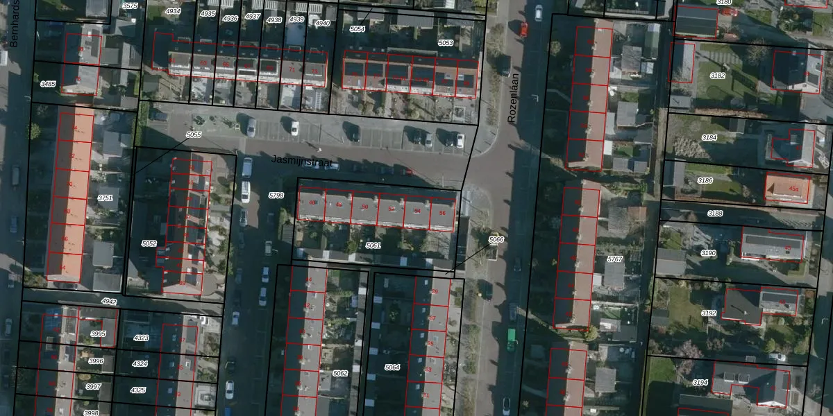 Jasmijnstraat 54 is gelegen op kadastraal perceel NMD00B5061. Deze kadastrale aanduiding is uniek en wordt gebruikt door het Kadaster om eigendomsrechten en andere zakelijke rechten vast te leggen. Het perceel maakt onderdeel uit van de kadastrale gemeente Numansdorp.