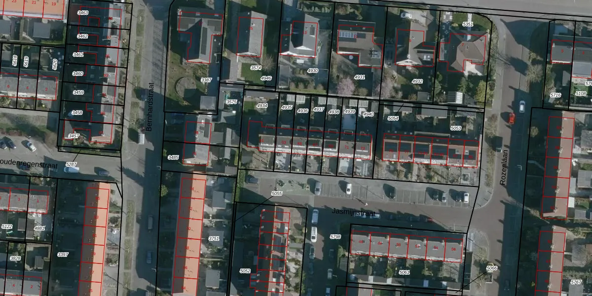 Het perceel waarop Jasmijnstraat 65 staat heeft een oppervlakte van 142 m². Dit is een middelgroot perceel. De perceeloppervlakte wordt geregistreerd door het Kadaster. Gedetailleerde informatie over de maten van dit perceel kunt u vinden in het rapport Kadastrale kaart met maatvoering van Jasmijnstraat 65.