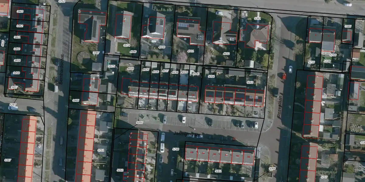 Het perceel waarop Jasmijnstraat 71 staat heeft een oppervlakte van 142 m². Dit is een middelgroot perceel. De perceeloppervlakte wordt geregistreerd door het Kadaster. Gedetailleerde informatie over de maten van dit perceel kunt u vinden in het rapport Kadastrale kaart met maatvoering van Jasmijnstraat 71.