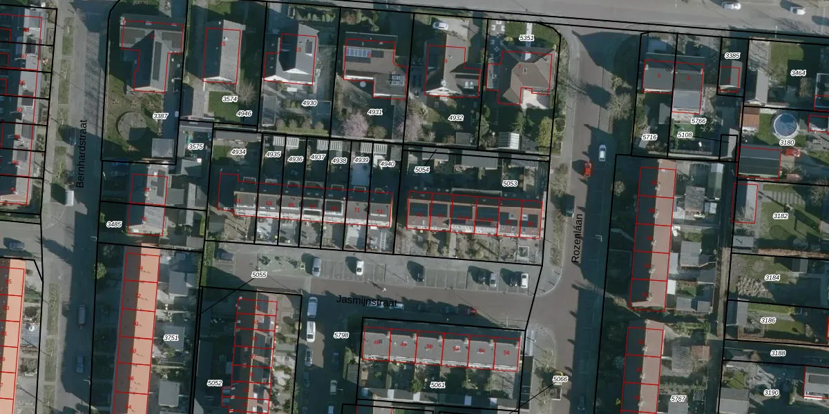 Het perceel waarop Jasmijnstraat 75 staat heeft een oppervlakte van 899 m². Dit is een groot perceel. De perceeloppervlakte wordt geregistreerd door het Kadaster. Gedetailleerde informatie over de maten van dit perceel kunt u vinden in het rapport Kadastrale kaart met maatvoering van Jasmijnstraat 75.