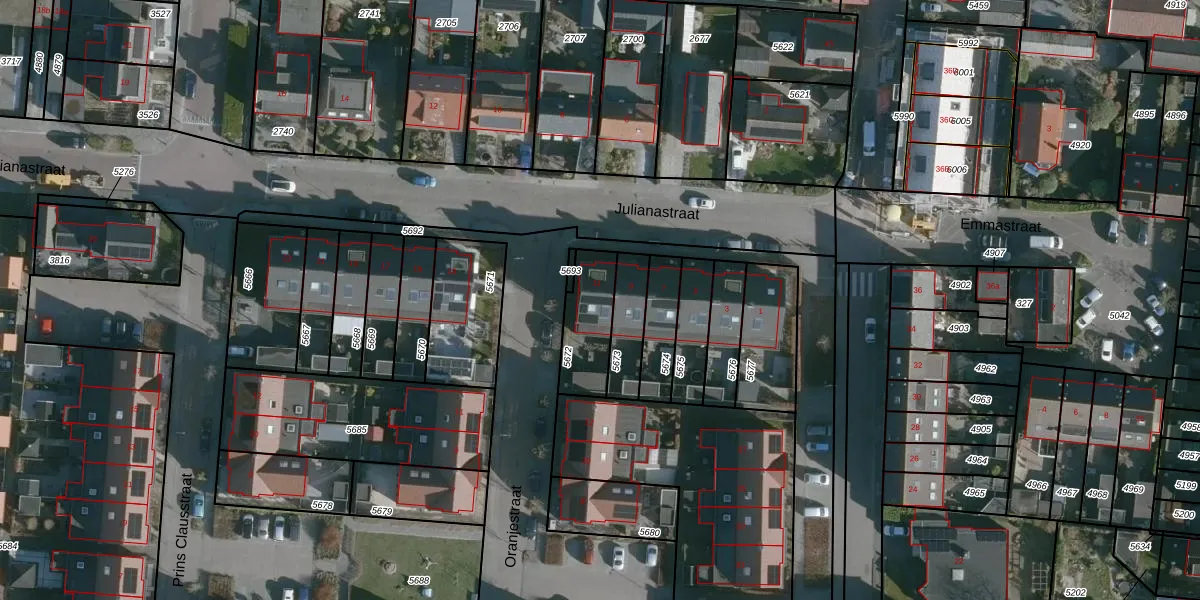 Julianastraat 11 is gelegen op kadastraal perceel NMD00B5672. Deze kadastrale aanduiding is uniek en wordt gebruikt door het Kadaster om eigendomsrechten en andere zakelijke rechten vast te leggen. Het perceel maakt onderdeel uit van de kadastrale gemeente Numansdorp.