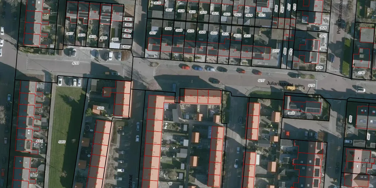 Julianastraat 31 is gelegen op kadastraal perceel NMD00B5047. Deze kadastrale aanduiding is uniek en wordt gebruikt door het Kadaster om eigendomsrechten en andere zakelijke rechten vast te leggen. Het perceel maakt onderdeel uit van de kadastrale gemeente Numansdorp.