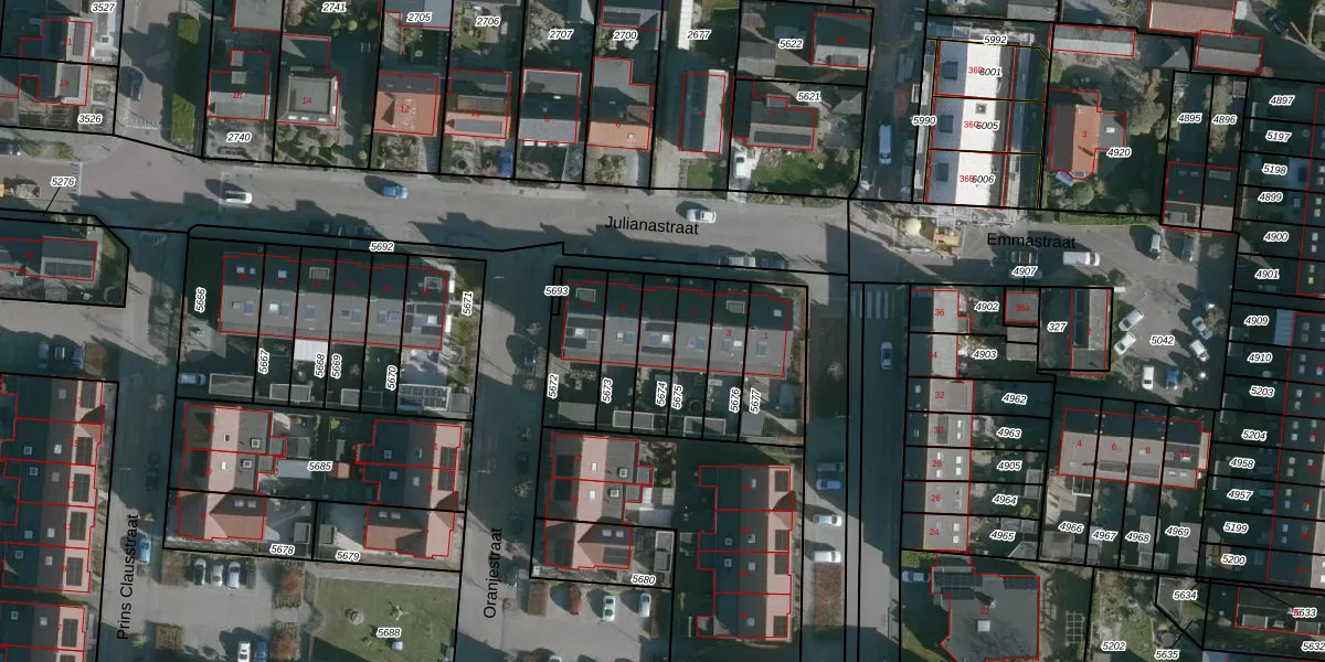 Julianastraat 7 is gelegen op kadastraal perceel NMD00B5674. Deze kadastrale aanduiding is uniek en wordt gebruikt door het Kadaster om eigendomsrechten en andere zakelijke rechten vast te leggen. Het perceel maakt onderdeel uit van de kadastrale gemeente Numansdorp.