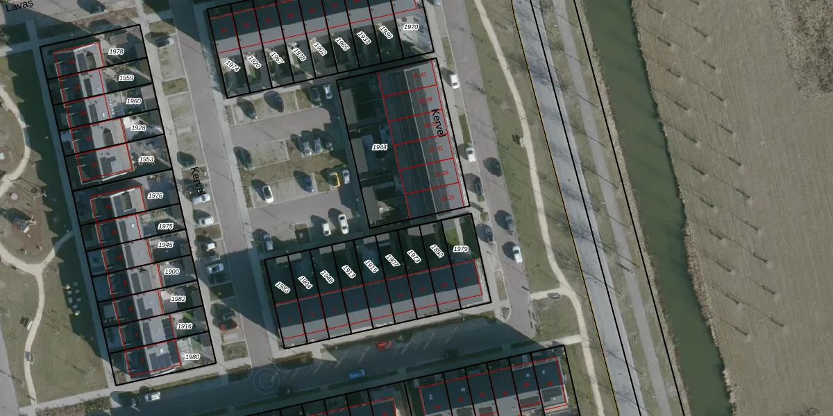 Het perceel waarop Kervel 23 staat heeft een oppervlakte van 895 m². Dit is een groot perceel. De perceeloppervlakte wordt geregistreerd door het Kadaster. Gedetailleerde informatie over de maten van dit perceel kunt u vinden in het rapport Kadastrale kaart met maatvoering van Kervel 23.