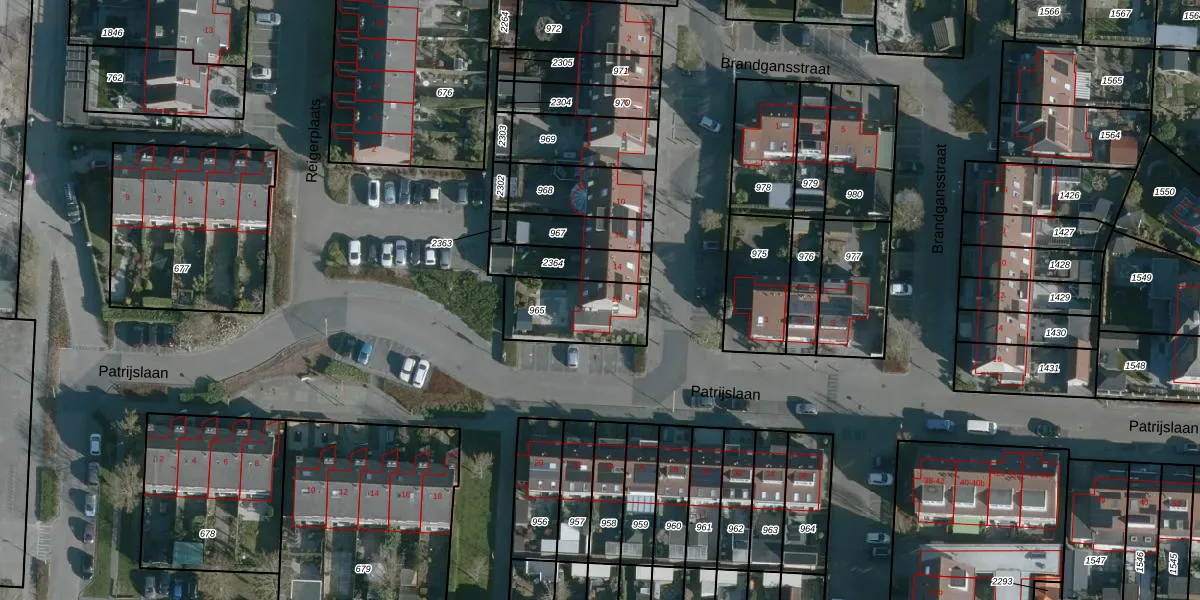Gebruik de zoekbalk of klik op een perceel voor informatie over de adressen binnen dit perceel.