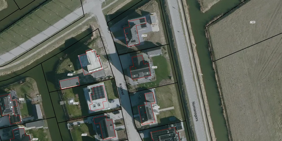 Kolonel 9 is gelegen op kadastraal perceel NMD00D2250. Deze kadastrale aanduiding is uniek en wordt gebruikt door het Kadaster om eigendomsrechten en andere zakelijke rechten vast te leggen. Het perceel maakt onderdeel uit van de kadastrale gemeente Numansdorp.