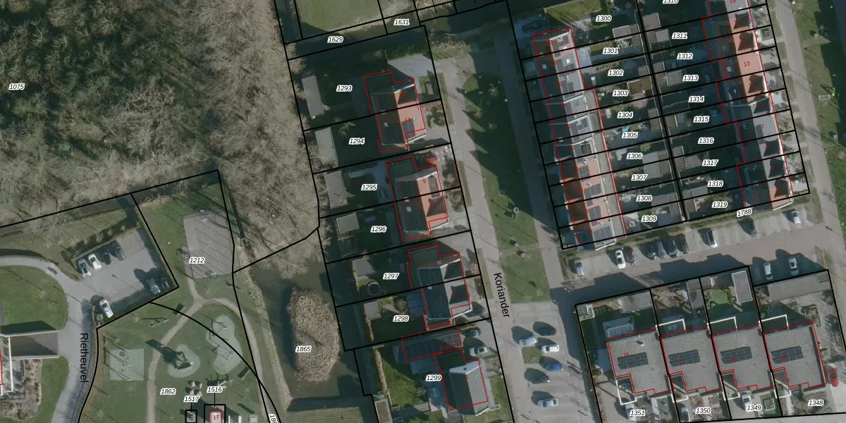 Het perceel waarop Koriander 7 staat heeft een oppervlakte van 375 m². Dit is een groot perceel. De perceeloppervlakte wordt geregistreerd door het Kadaster. Gedetailleerde informatie over de maten van dit perceel kunt u vinden in het rapport Kadastrale kaart met maatvoering van Koriander 7.