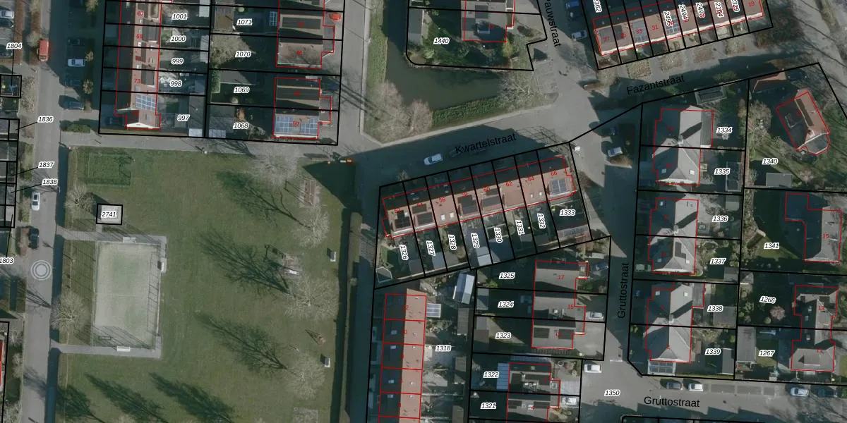 Kwartelstraat 54 is gelegen op kadastraal perceel NMD00F1327. Deze kadastrale aanduiding is uniek en wordt gebruikt door het Kadaster om eigendomsrechten en andere zakelijke rechten vast te leggen. Het perceel maakt onderdeel uit van de kadastrale gemeente Numansdorp.