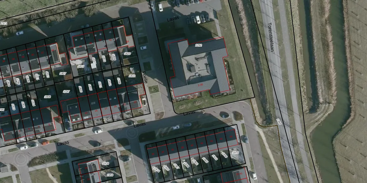 Het perceel waarop Lavas 12 staat heeft een oppervlakte van 3055 m². Dit is een zeer groot perceel. De perceeloppervlakte wordt geregistreerd door het Kadaster. Gedetailleerde informatie over de maten van dit perceel kunt u vinden in het rapport Kadastrale kaart met maatvoering van Lavas 12.